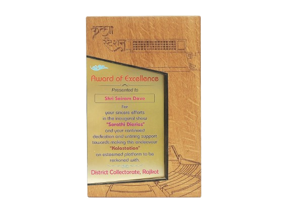 District Collectorate of Rajkot honoured Shri Sairam Dave for his show “Sorathi Diaries” in “Kalastation”