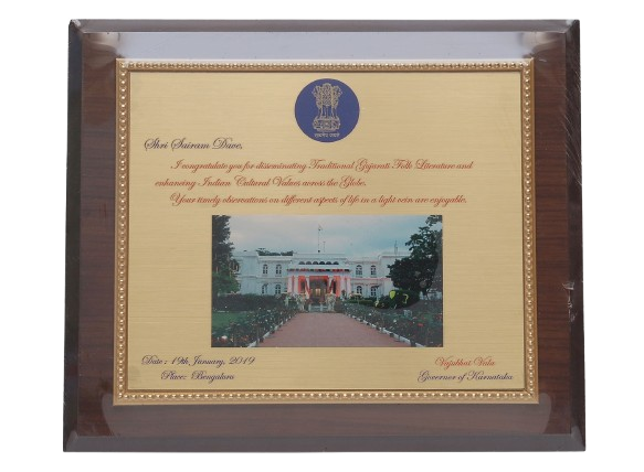 Governor of Karnataka, Vajubhai Vala appreciated him for Disseminating traditional Gujarati Folk Literature Globally