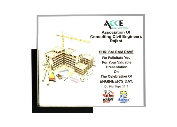 Shri Brahma Social Group, Gondal, awarded the “Sahitya Kala Award” to Shri Sairam Dave in 2002
